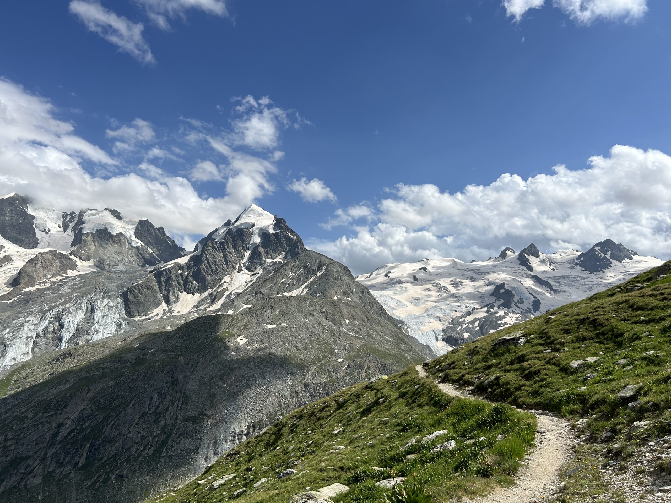 Ab Hotel Roseg Gletscher leichte Bergwanderung über die Alp Ota. Schwierigkeit (T2). Gehzeit ca. 3 Stunden